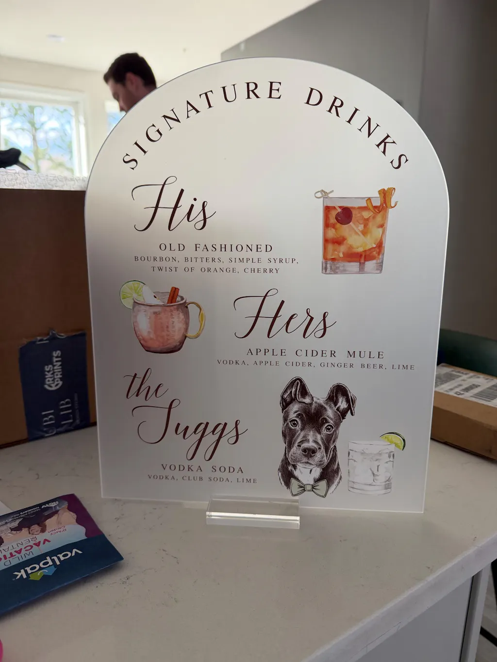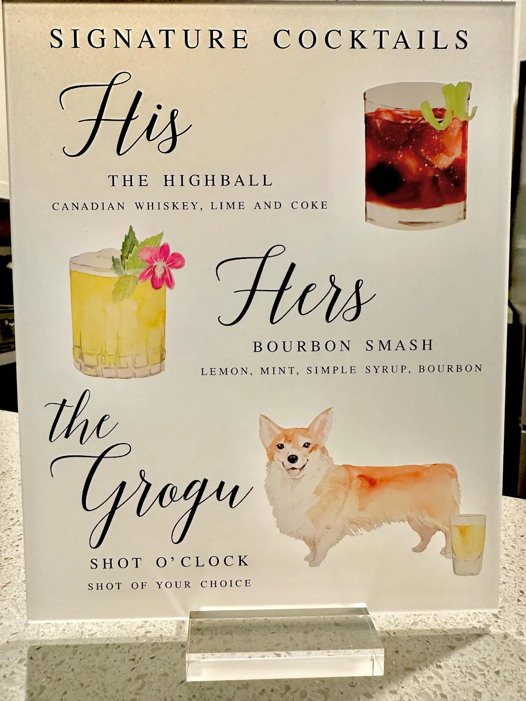 Designed to showcase your curated drink selection, this sign makes it easy for guests to choose their favorite cocktails, wine, or beer. Whether you're highlighting signature drinks or offering a classic bar lineup, our bar signs are made to complement your event décor beautifully.