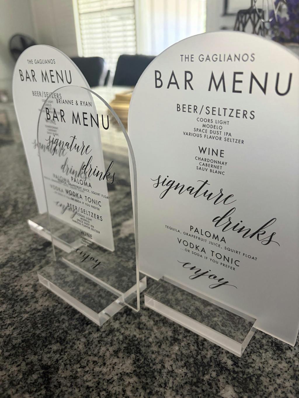 - Acrylic (Clear, Frosted, Glossy White, Glossy Black, Colored)