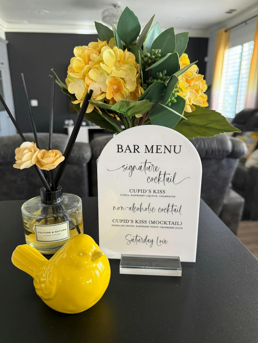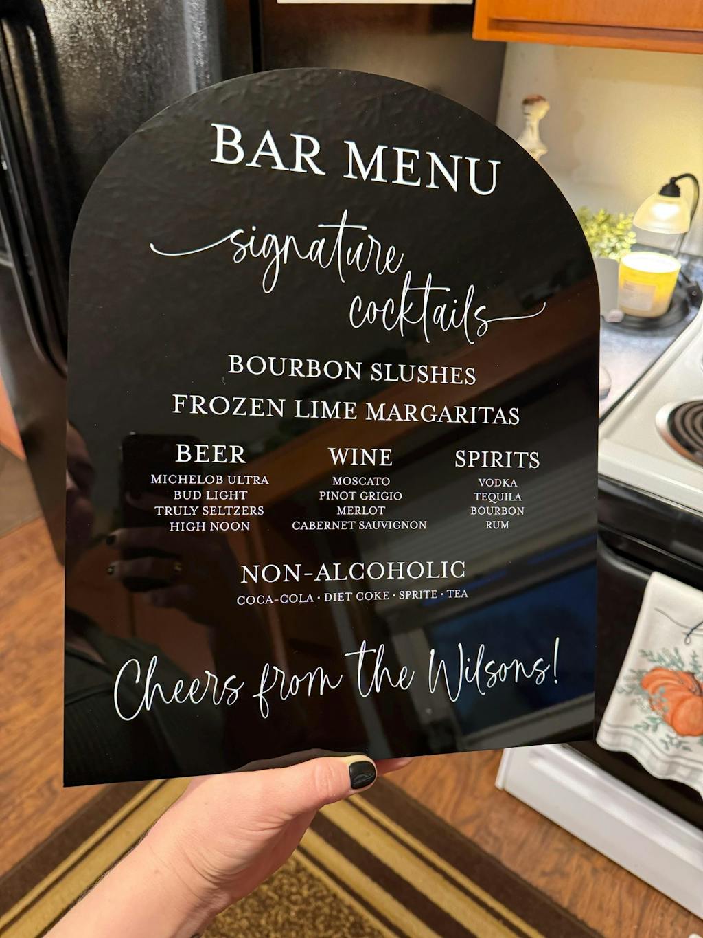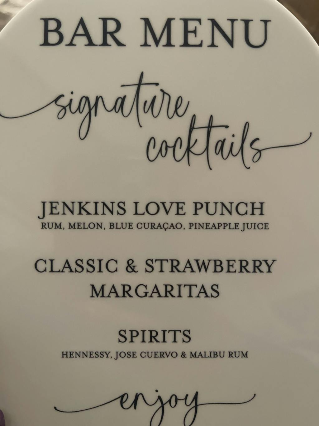 Are you ready to keep your guests in good spirits on your special day? With our Wedding Bar Sign, finding the perfect spot for drinks is a breeze! Designed with a timeless shape that's sure to match any wedding style, it's just what you need to welcome your guests with a toast. Featuring a comprehensive list of wine, beer and spirits sure to satisfy everyone’s preferences, no one will go thirsty. After the wedding, you can bring your personalized Wedding Bar Sign home and show off all the wonderful memories of your big day!