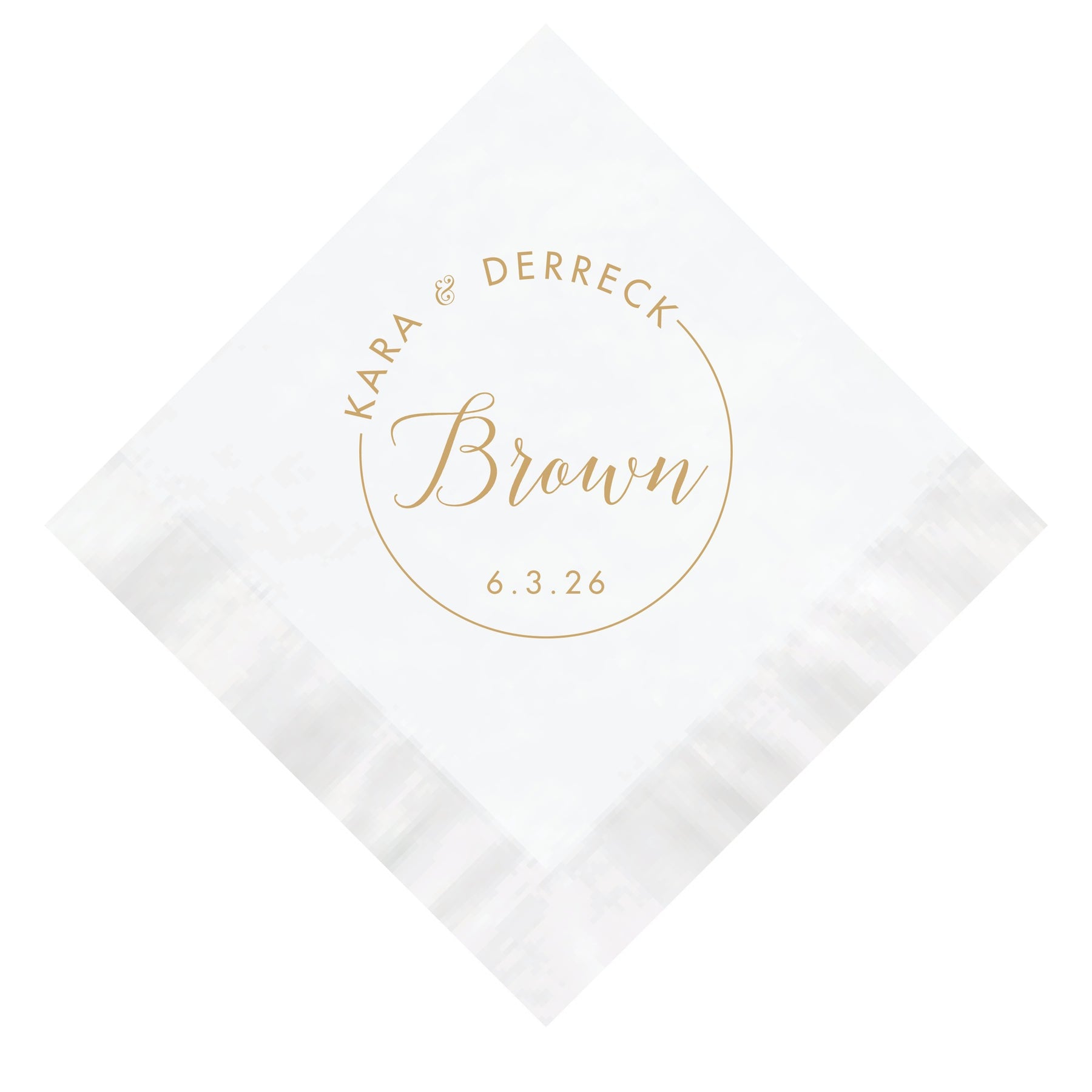 Custom Circle Monogram Wedding Napkins – Names, Last Name & Date