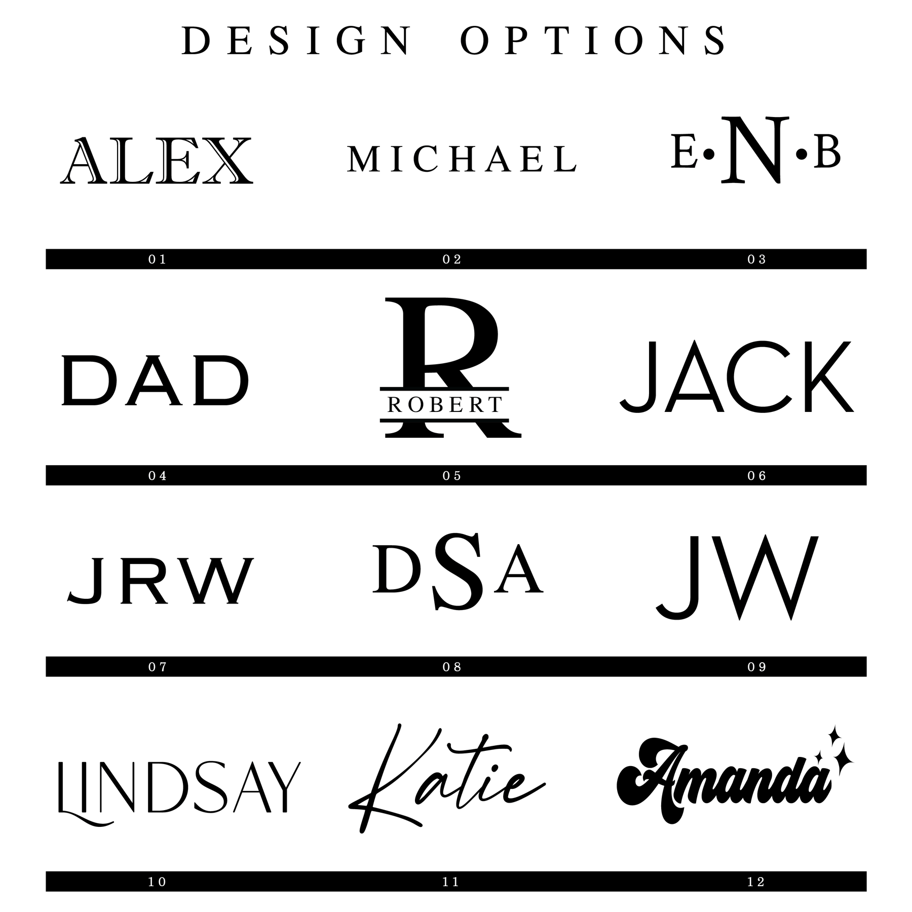 We love bringing your ideas to life! Choose from our wide selection of fonts and images, or send us your logo or custom artwork.