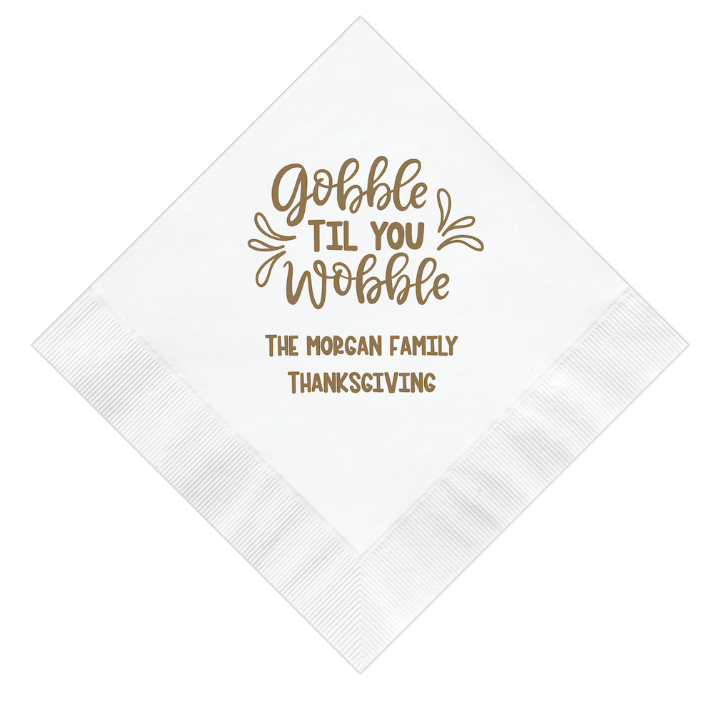 Gobble Til You Wobble Thanksgiving Napkins – Custom Family Cocktail Napkins