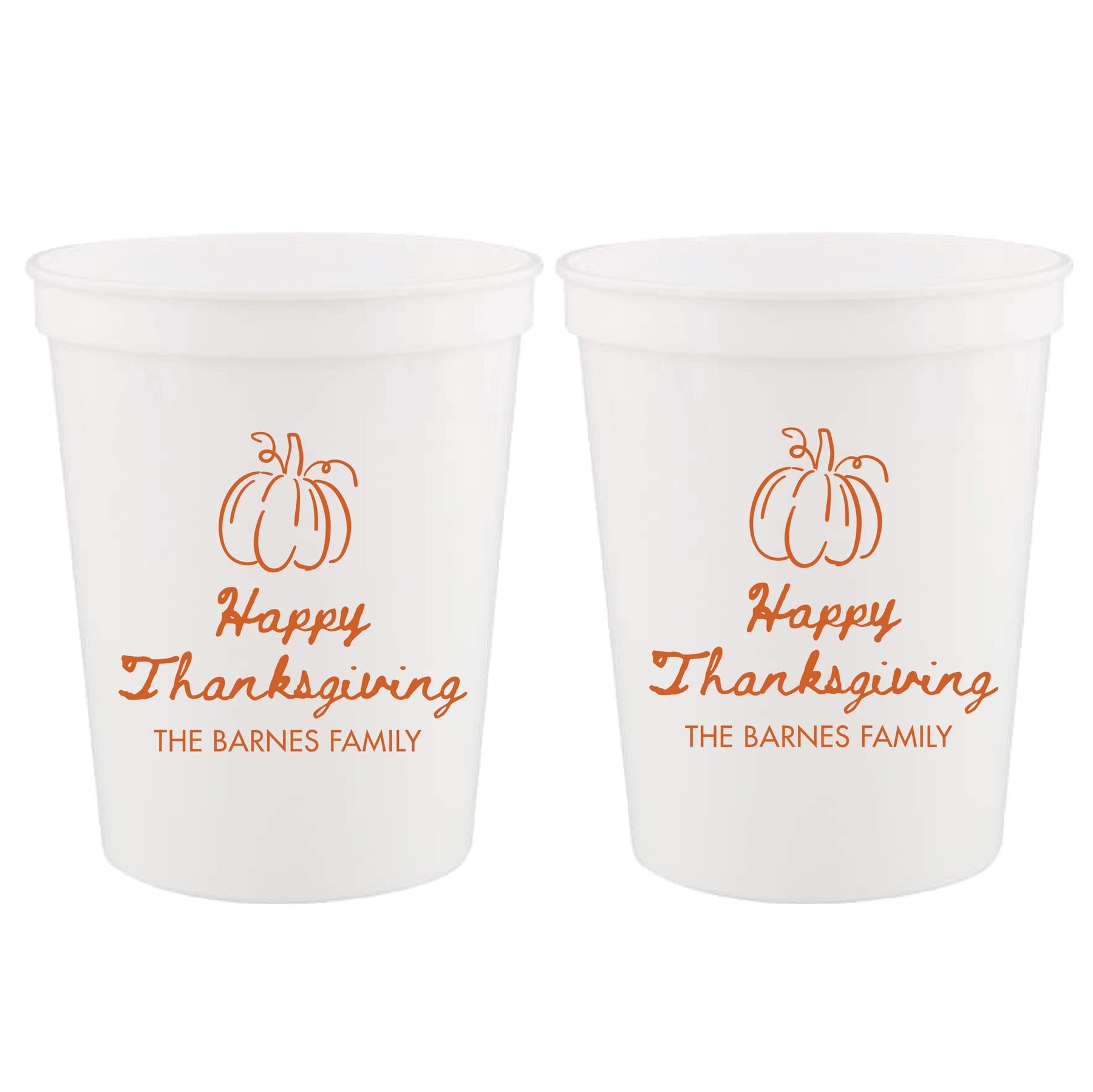 Happy Thanksgiving Pumpkin Stadium Cups – Personalized with Family Name