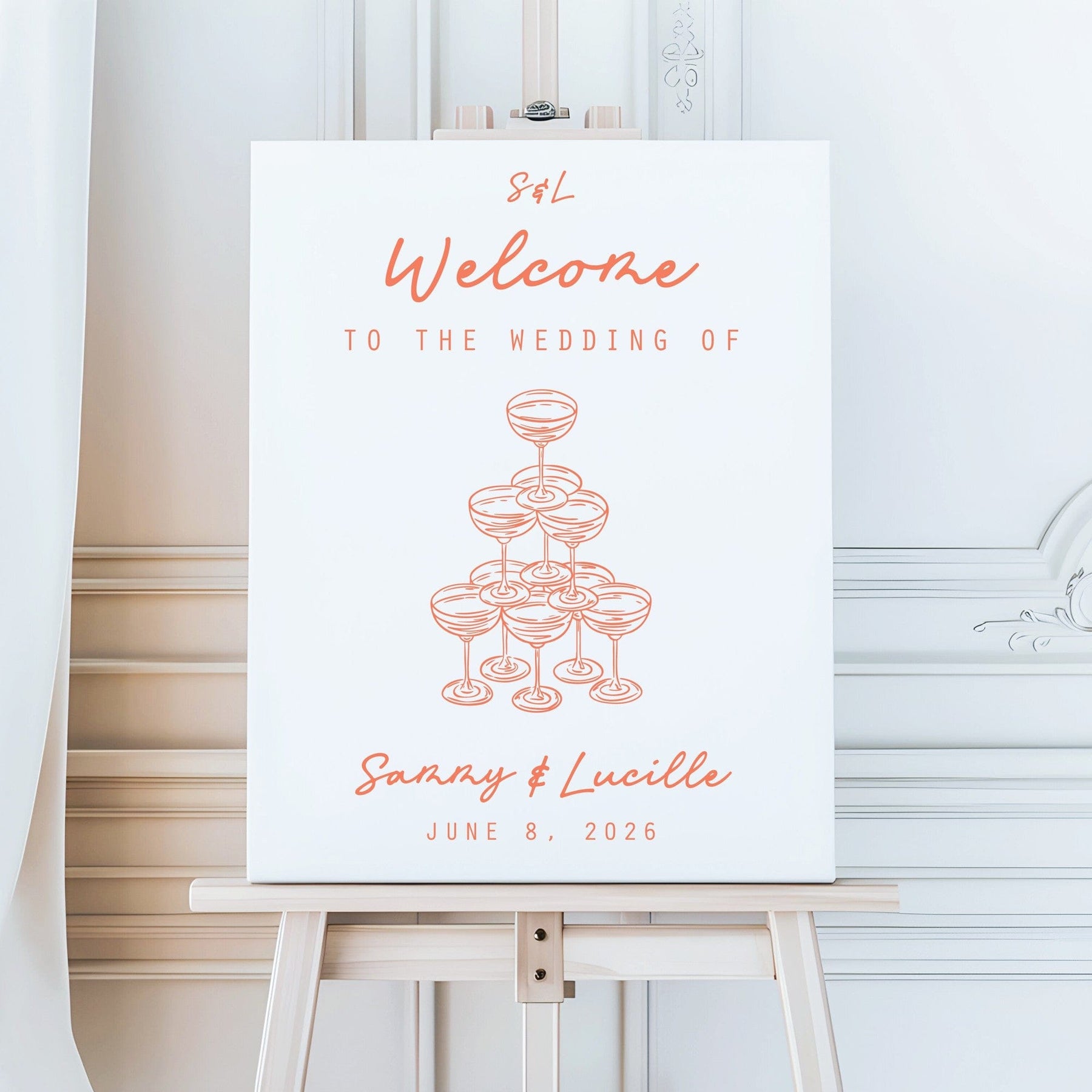 Modern Champagne Tower Wedding Sign | Fun Wedding Welcome Sign