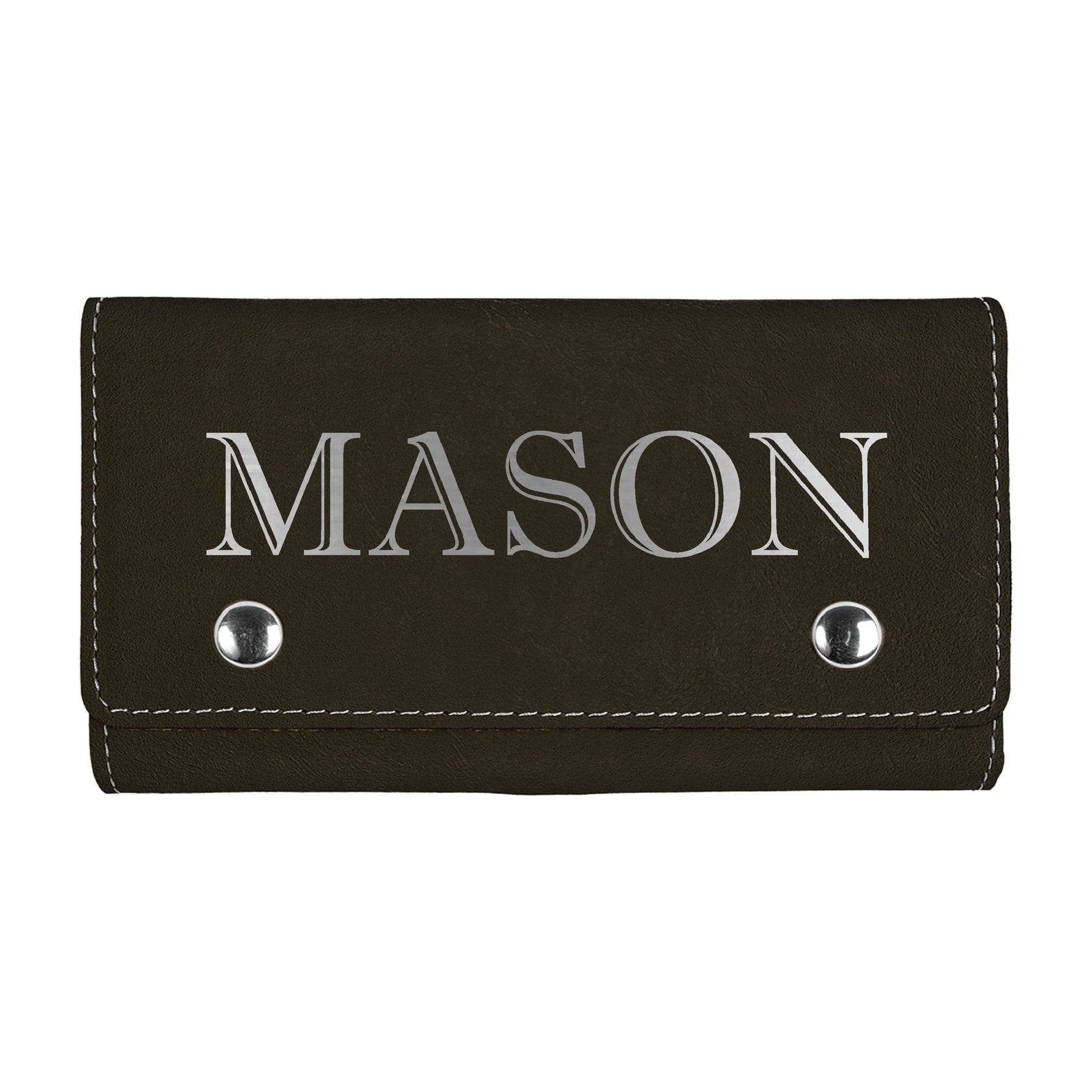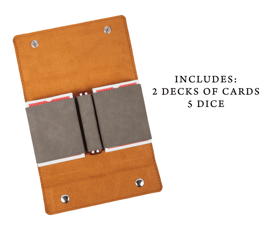 - Engraved Leatherette Card & Dice Set (Black) – Includes two decks of cards and five dice in a sleek snap-closure case. Personalized with his name or initials for a polished, cohesive look.