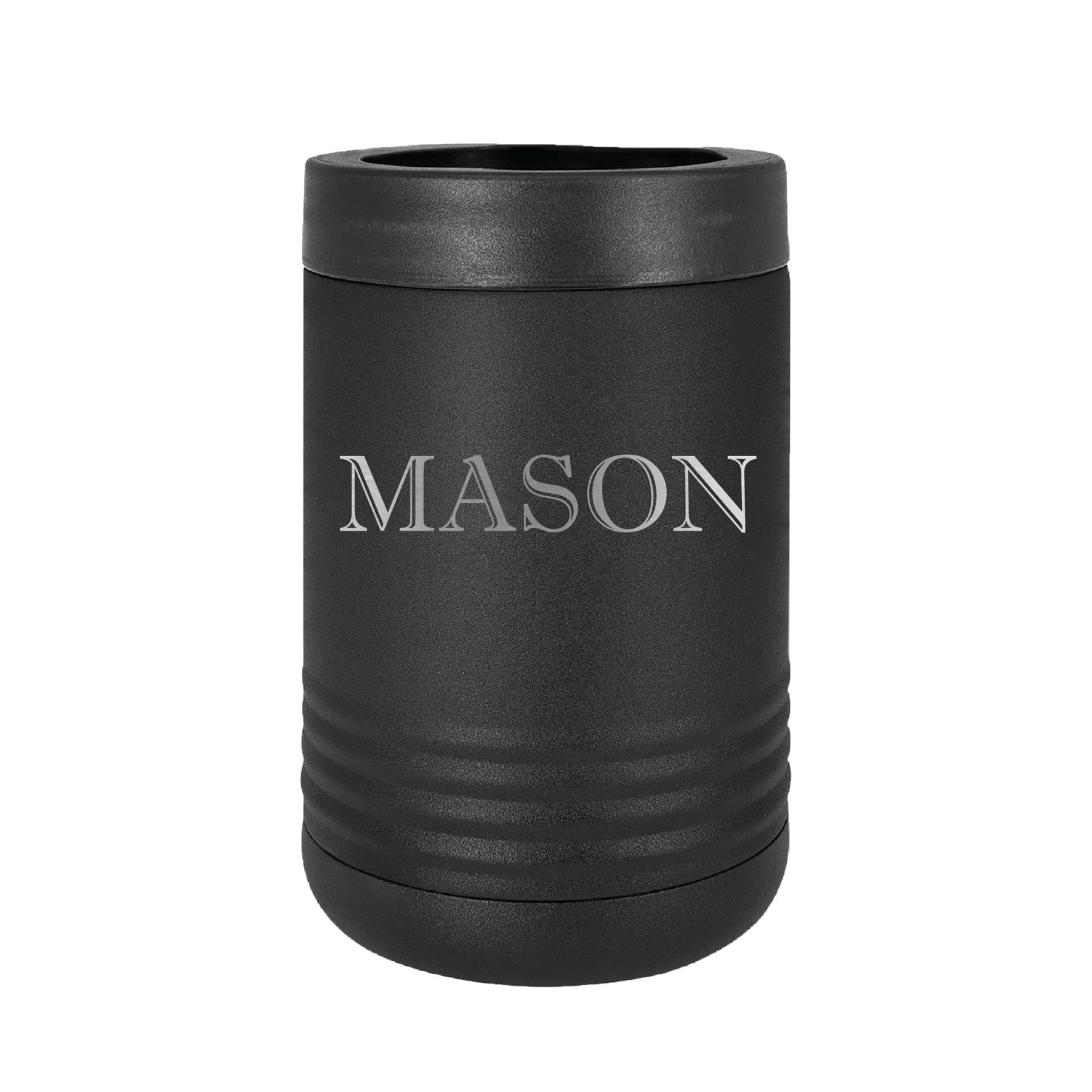 Engraved Metal Can Cooler (Black) – Stainless steel, laser engraved with his name for a lasting finish. Keeps drinks cold for hours.