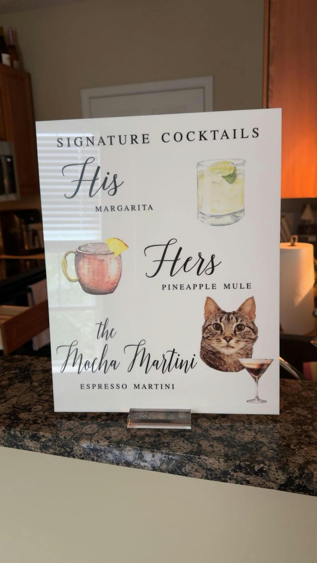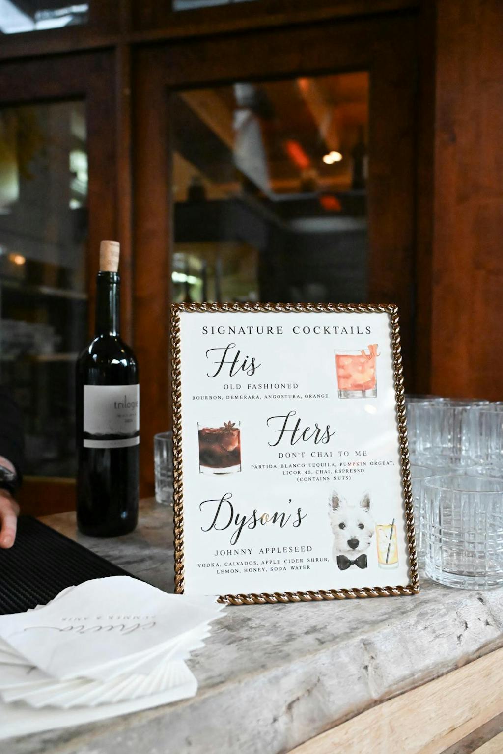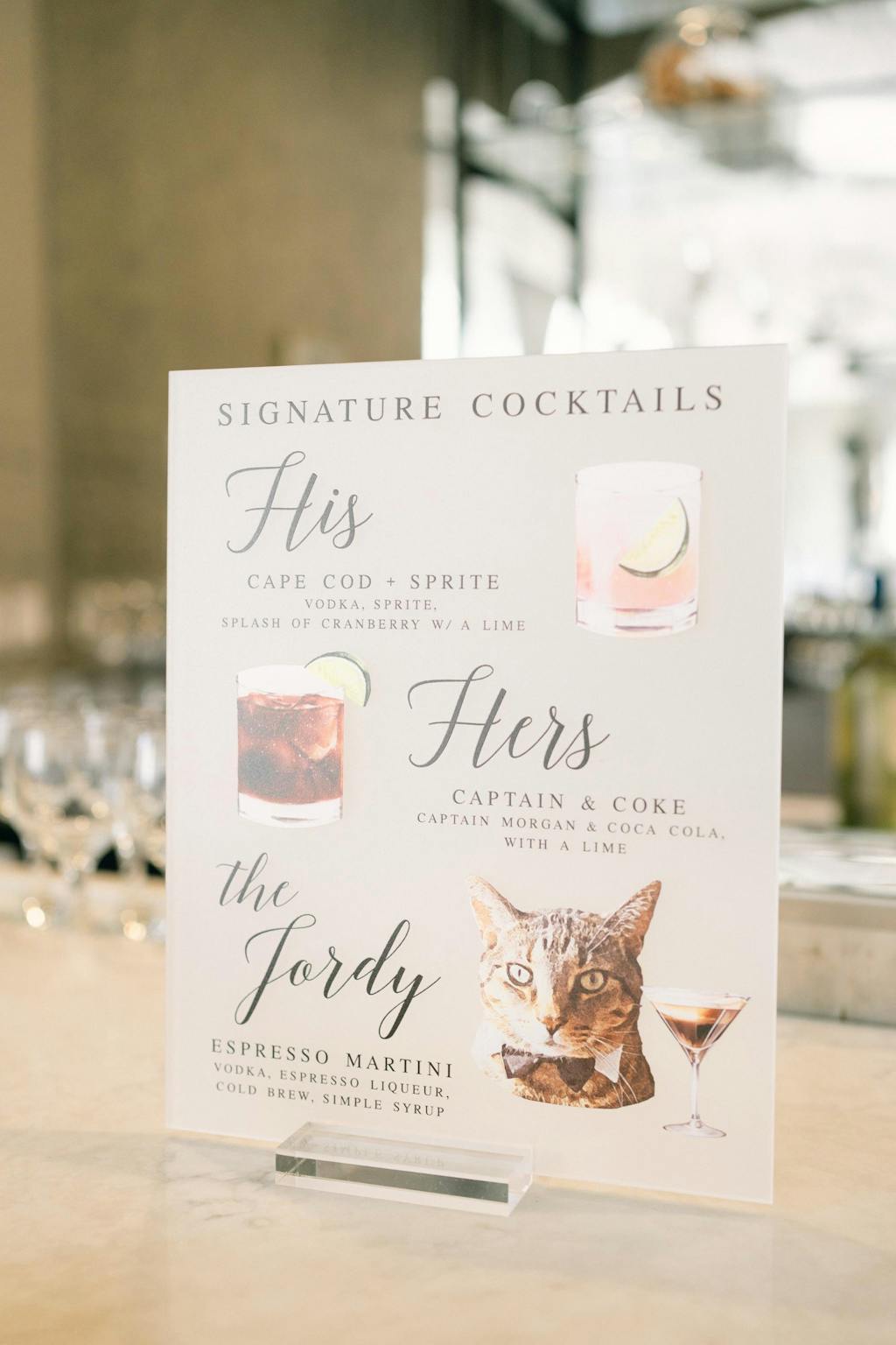 Designed to showcase your curated drink selection, this sign makes it easy for guests to choose their favorite cocktails, wine, or beer. Whether you're highlighting signature drinks or offering a classic bar lineup, our bar signs are made to complement your event décor beautifully.