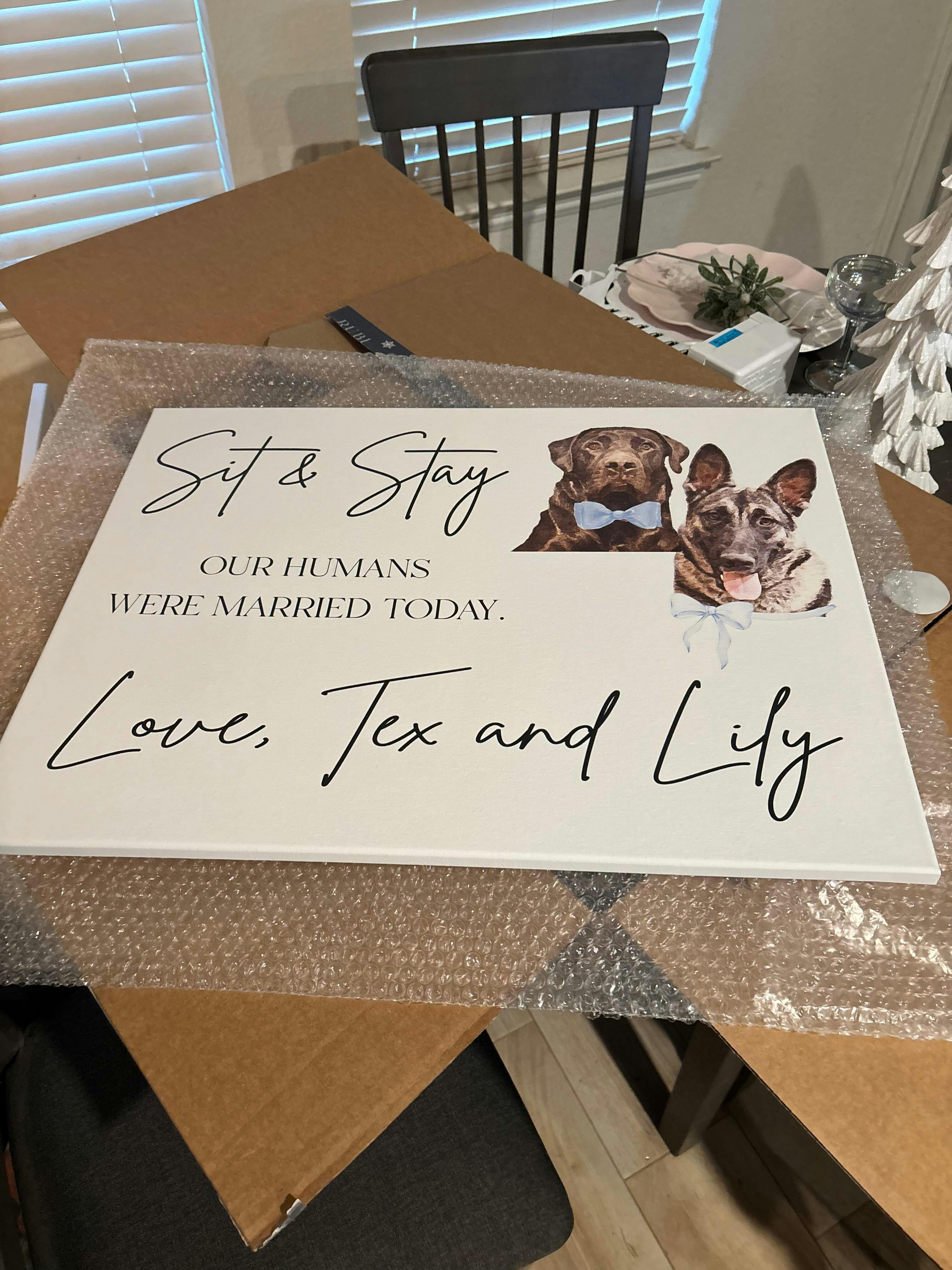 This beautiful Welcome Sign is the perfect way to welcome your guests to your wedding while featuring your beloved pet. Handcrafted from premium materials, this sign features a unique design with an elegant lettering style that will add a touch of class and sophistication to your special day. The perfect addition to any ceremony, this welcome sign will make sure everyone knows exactly where to go. Whether it's placed near the entrance or used as part of a larger display, this gorgeous Welcome Sign for Weddings will ensure a warm and inviting atmosphere for all of your loved ones.