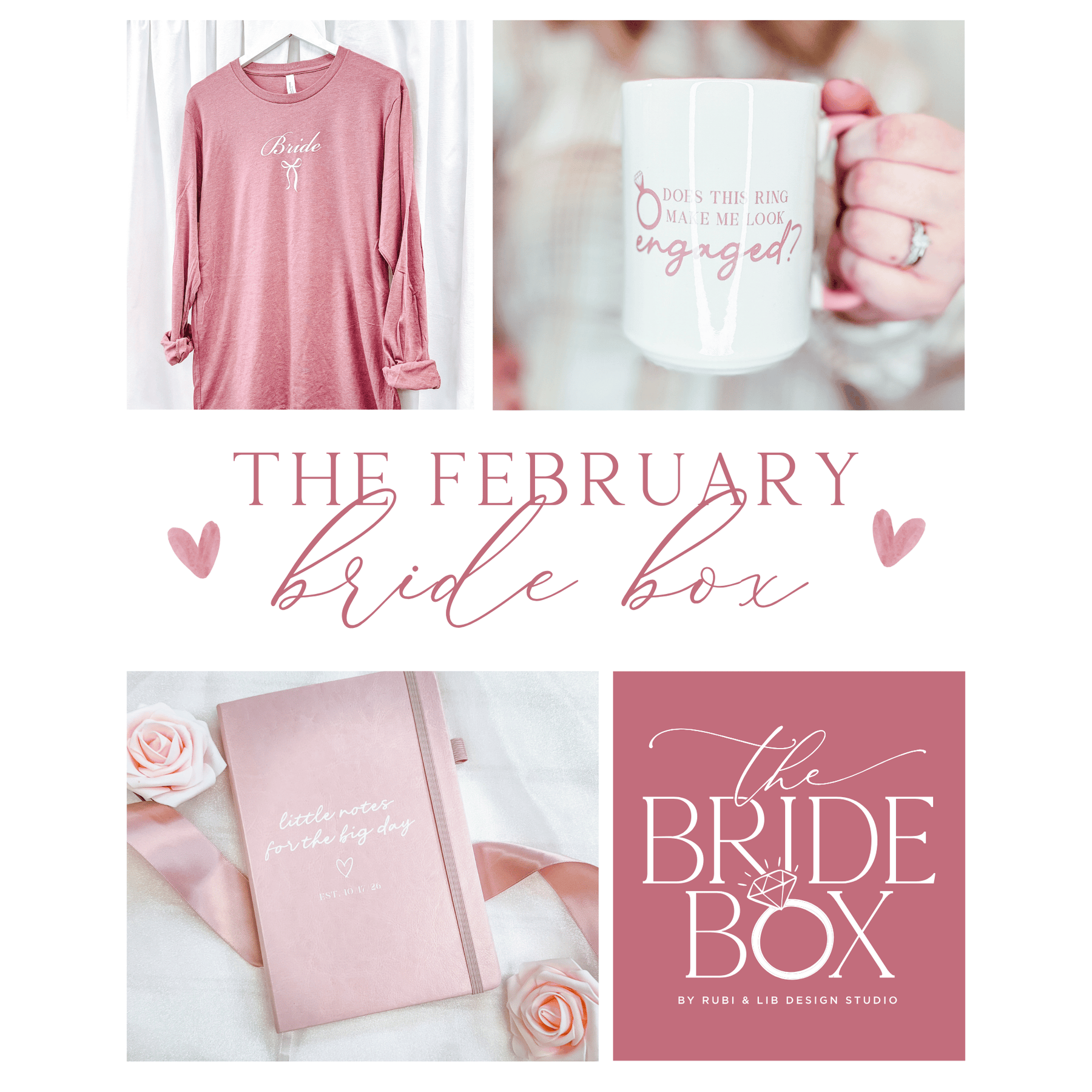Join the Bride Box Club and receive the current month’s curated box. Orders placed after the 20th start with next month’s theme.