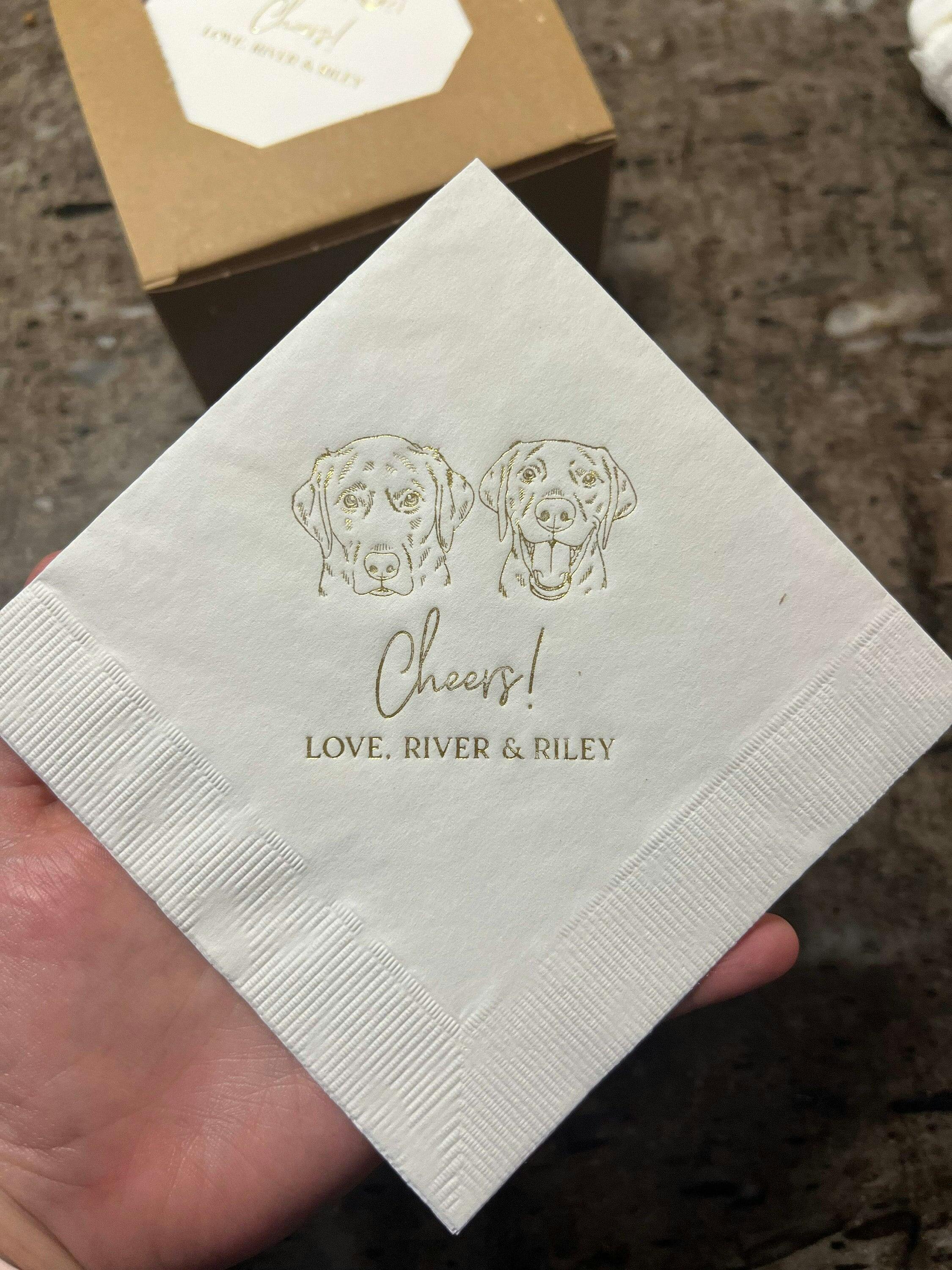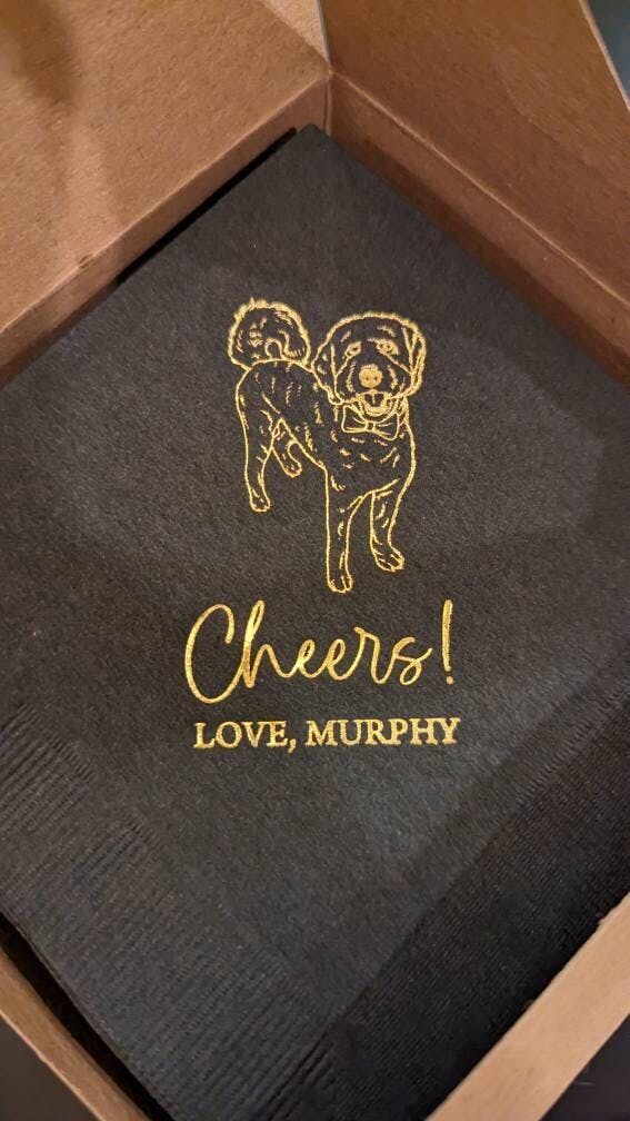 Let us custom create your wedding or party product with your pet. Using your photo we'll create hand draw a custom image that can be used on a variety of our products or simply printed, framed, and given as a gift.